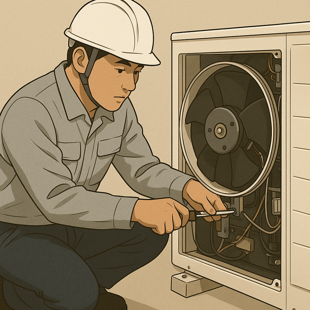 エアコン内部の分解清掃や冷媒ガス漏れ確認、部品の状態チェックなど、お客様では難しい部分まで丁寧に点検・整備いたします。