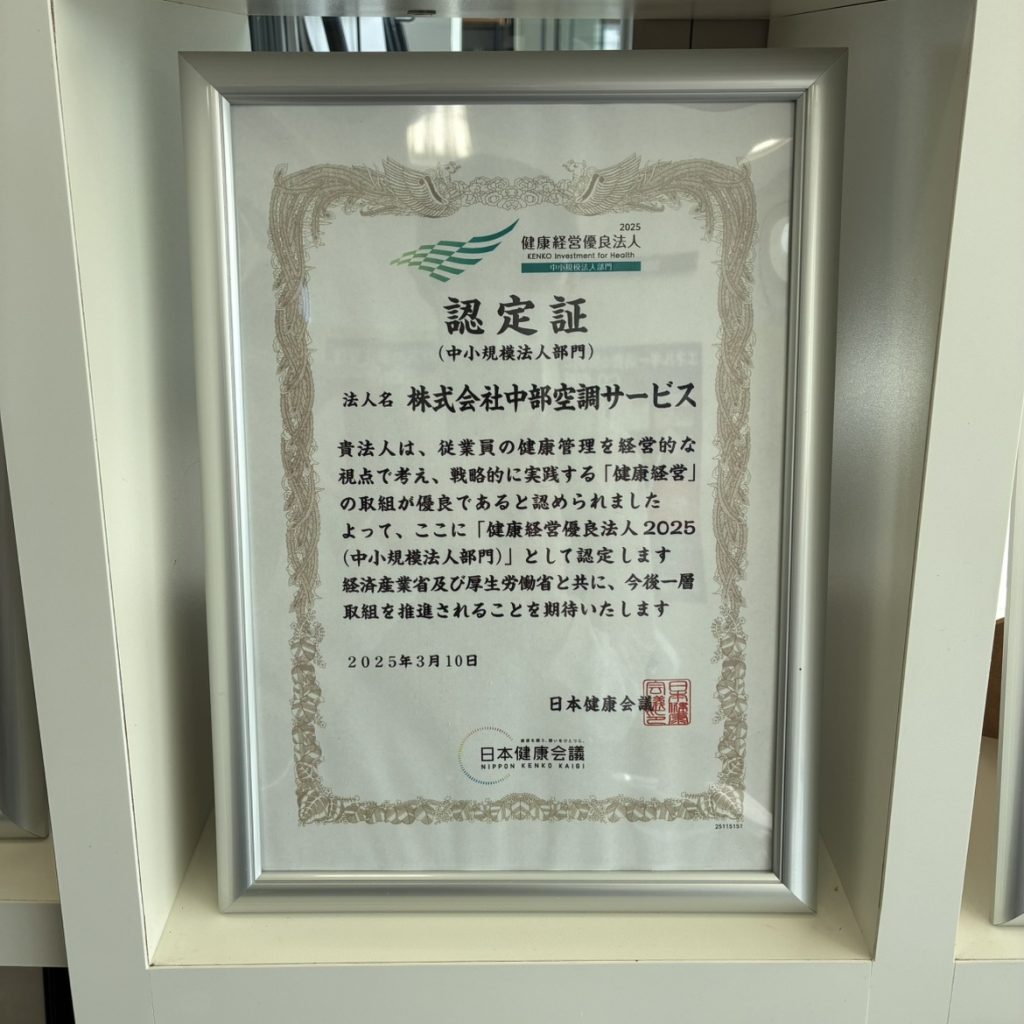 中部空調サービスは、2022年から3年連続で「健康経営優良法人」に認定されています。