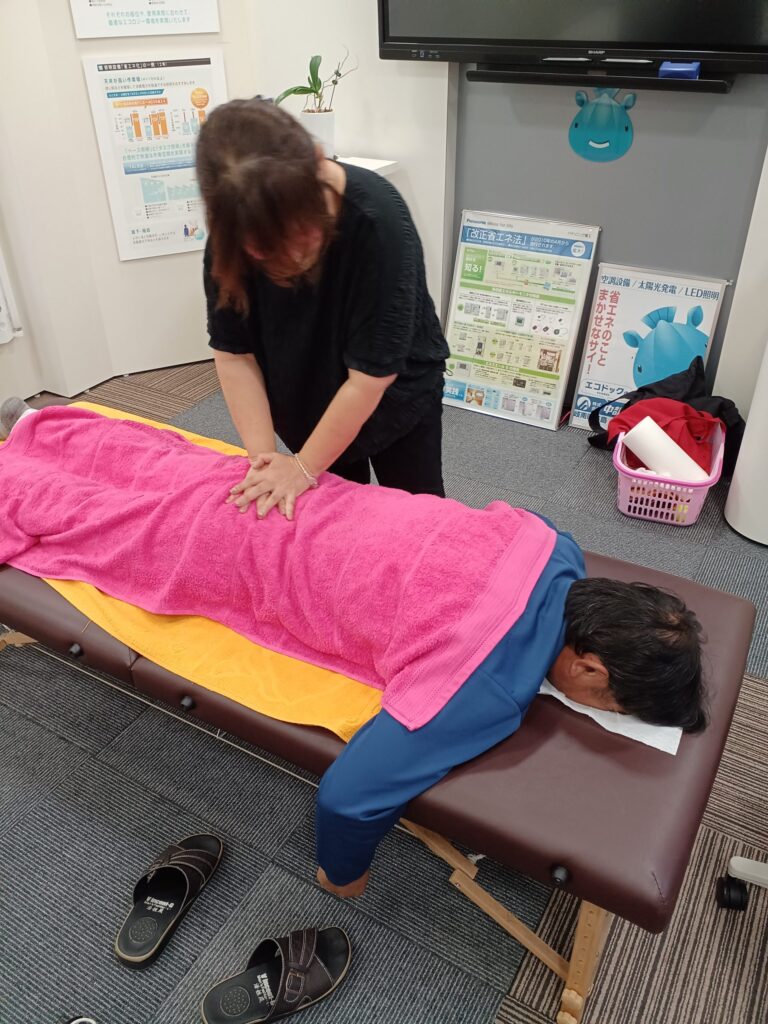 現場作業で腰や肩に負担がかかる社員も多く、施術後には「体が軽くなった」「また頑張れそう」といった声が上がります。