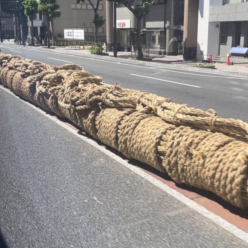 窓の外を見ると、国道58号線の中央分離帯に巨大な綱が設置されていました。