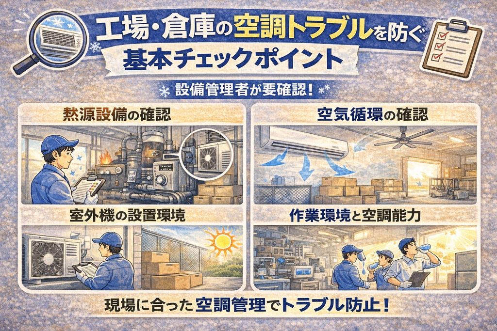 工場・倉庫で空調トラブルを防ぐために確認しておきたい基本ポイントをご紹介します。