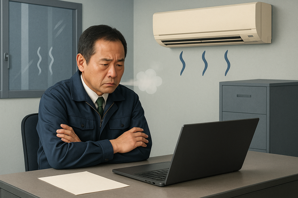 ここまで確認して改善しない場合は、内部部品や冷媒系統など専門的な領域に入ります。無理に触ると故障や事故の原因になるため、専門業者への点検を強くおすすめします。