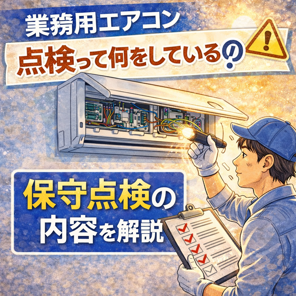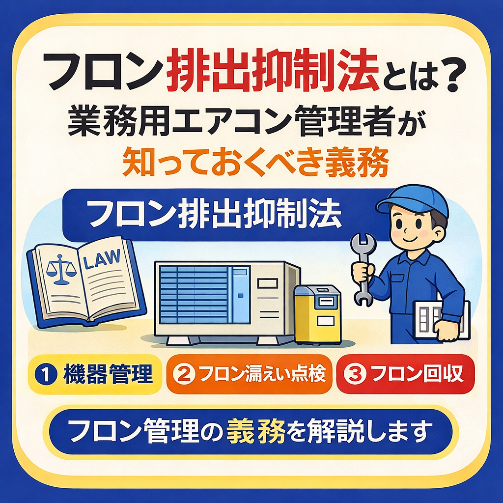 Chubukucho TOP 会社の取り組み公共施設工場店舗・オフィス生産環境向上病院・クリニック 【3/19】フロン回収しないとどうなる?業務用エアコンの罰則とリスクを解説 2026/03/19 公共施設困ったときは工場店舗・オフィス生産環境向上病院・クリニック 【3/19】業務用エアコンの点検って何をしているの?保守点検の内容を分かりやすく解説 2026/03/19 会社の取り組み公共施設困ったときは工場店舗・オフィス生産環境向上病院・クリニック 【3/17】フロン排出抑制法とは?業務用エアコン管理者が知っておくべき義務を解説 2026/03/17 公共施設困ったときは工場店舗・オフィス生産環境向上病院・クリニック 【3/17】空調機の故障は突然ではない?よくある前兆サイン5選 2026/03/17 会社の取り組み公共施設困ったときは工場店舗・オフィス病院・クリニック 業務用エアコンの撤去・廃棄にはフロン回収が必要!処分時の流れと必要書類を解説 2026/03/12 公共施設困ったときは工場店舗・オフィス生産環境向上病院・クリニック 夏のトラブルは春に防ぐ!業務用エアコン定期点検の重要性 2026/03/12 会社の取り組み公共施設困ったときは工場店舗・オフィス生産環境向上病院・クリニック フロン回収時に必要な「行程管理票」と「回収フロン破壊処理証明書」とは?保管義務もわかりやすく解説 2026/03/10 ポジションは新人です 【社員紹介18人目】ポジションは新人。サービス部課長ってこんな方! 2026/03/10 公共施設困ったときは工場店舗・オフィス生産環境向上病院・クリニック 働きやすさは空気から!業務用エアコンの保守点検で防ぐ空調トラブル 2026/03/09 投稿ナビゲーション 1 2 … 29 次へ お問い合わせ お気軽にお問合せください。